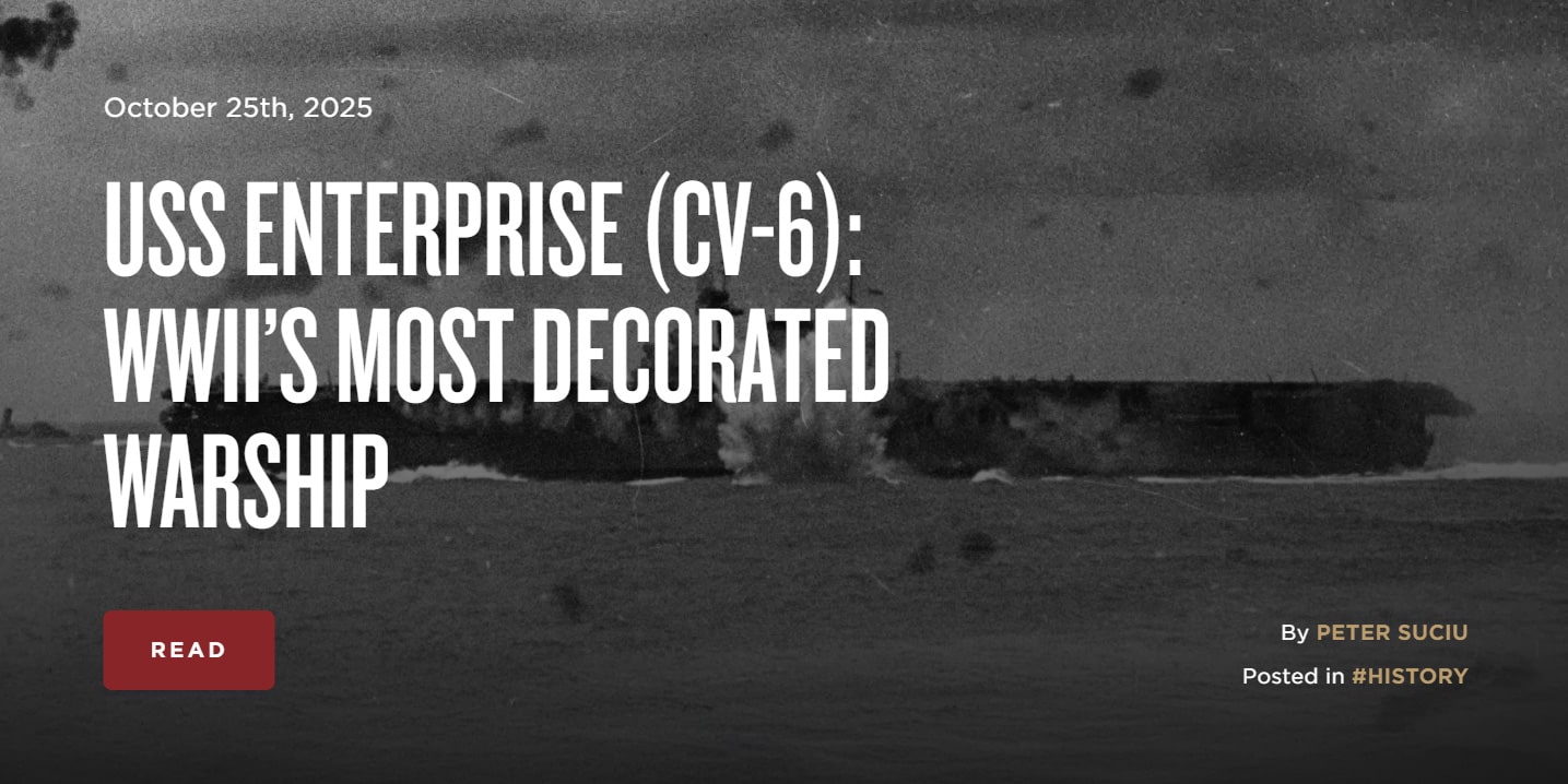 Enterprise entered World War II on the morning of December 7, 1941, when her scout planes encountered the Japanese squadrons attacking Pearl Harbor. Not until May 14, 1945, when a Kamikaze attack off Kyushu, Japan, left a gaping hole in her flight deck, was she forced to leave the war.