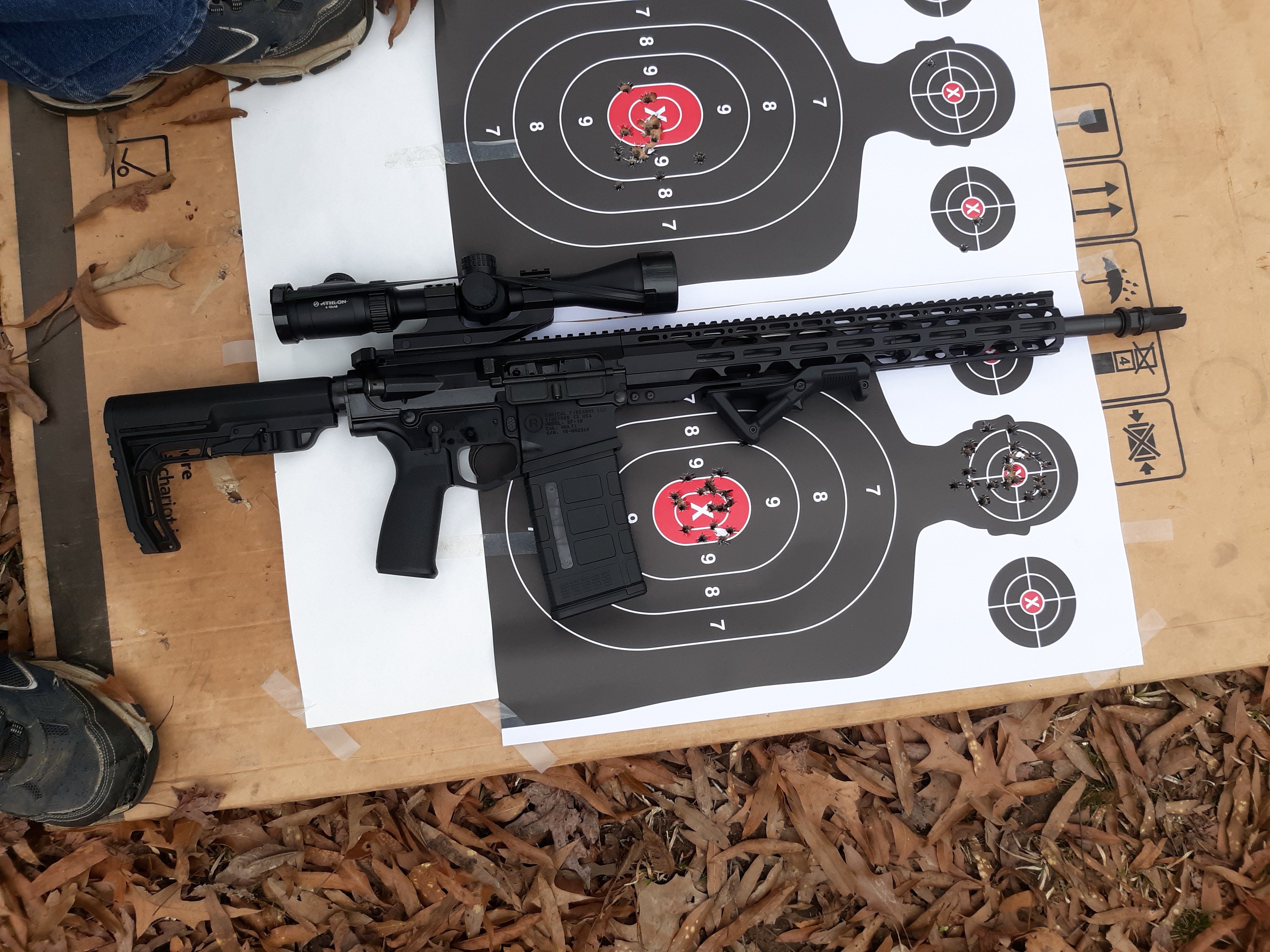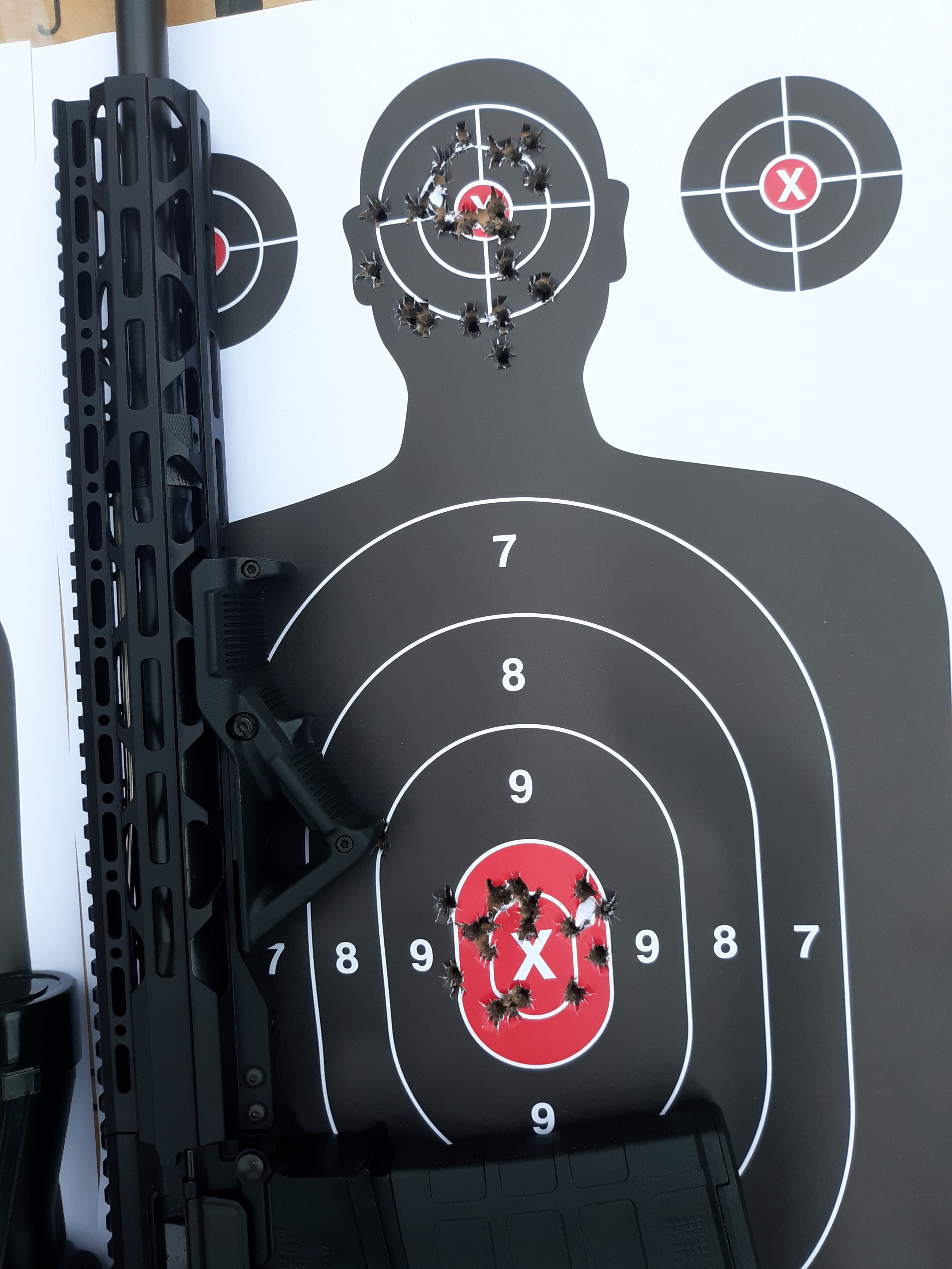 Was supposed to be 67, was only 50. anyway took this Radical 308 and put a few through it. 100 yards off a front rest. put the huxwrx suppressor on it and shot about 10 rounds, man what a difference. i mean a big difference. it was hitting a little lower as seen on the head shots. then took it off and back to center. wind was blowin hard. not the best but ehh! it is what it is.