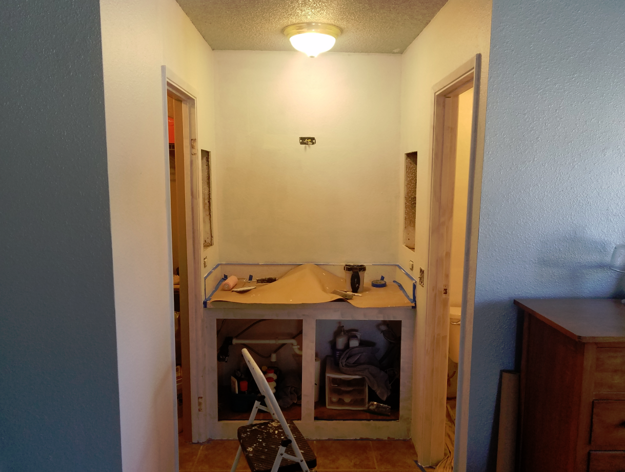 building rough for small storage THING it will only be 10 inches deep but it also will hide a panel to access a junction box. using some cherry stained doors i had from an OLD fridge as cabinet doors. wife is eagerly awaiting to refinish them now