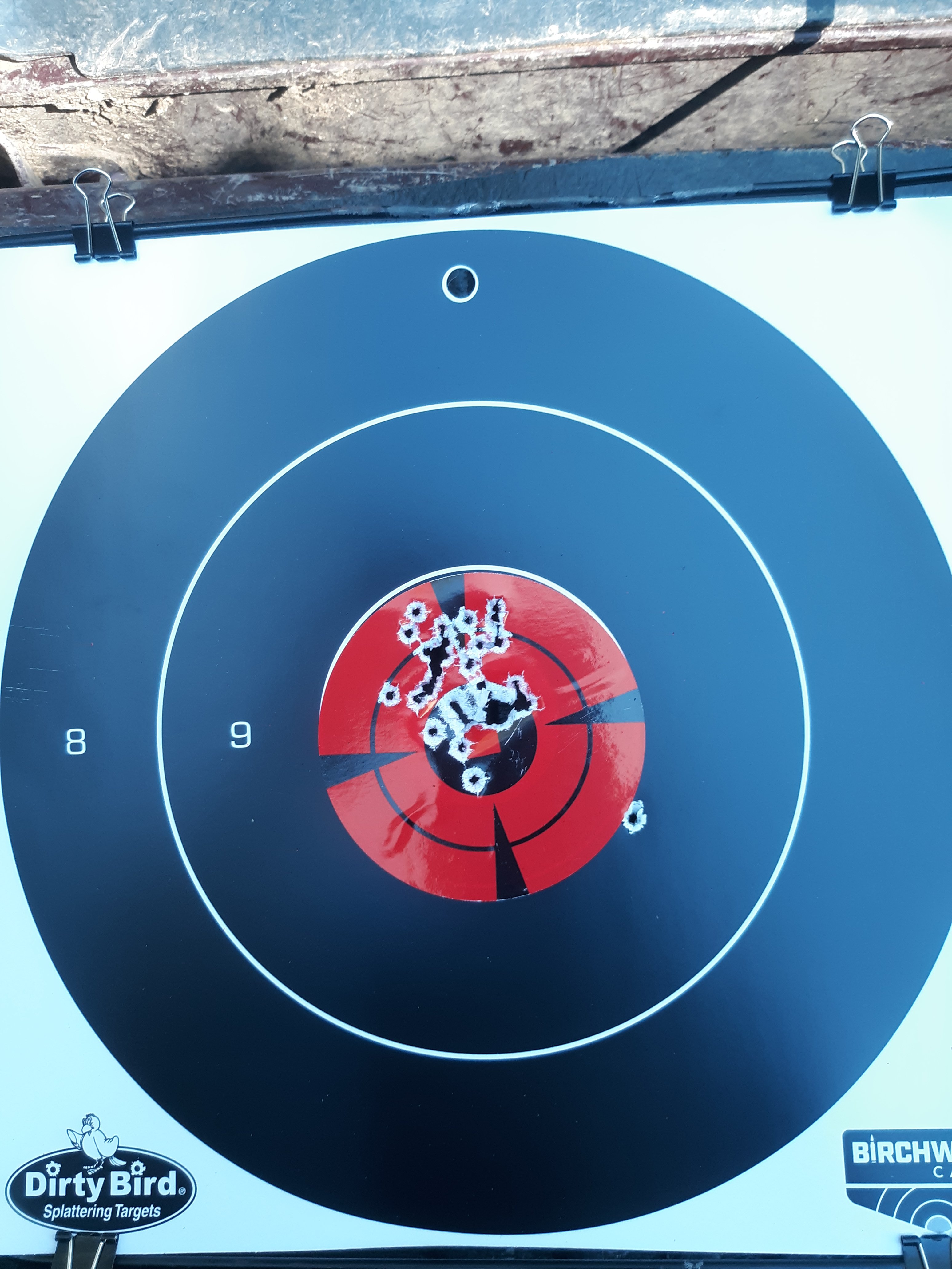So i loaded up the 8000 pound range bag and took that long journey across the road. took the little henry. wasn't goin to shoot this thing but eh, what the heck. 15 yards off a front rest. sights were a little off to the left i corrected it though. i like this gun but the sights suck as most levers do. black wing and black post. was really hard to see shooting at the dark targets. the new tactical lever sights are so much better. if this wasn't a 25th anniversary gun it would be getting new ones.
