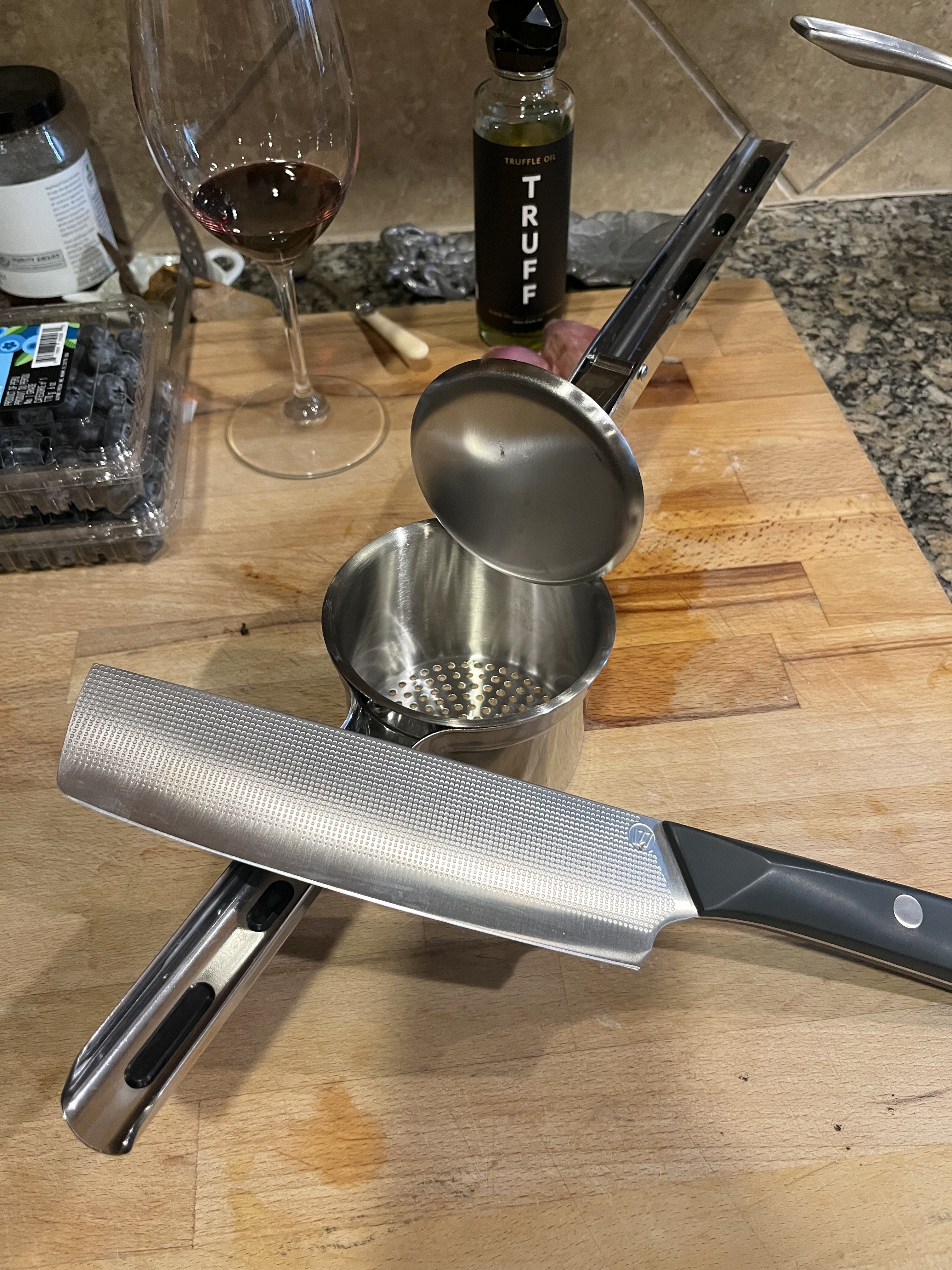 Prepping dinner and using my new knife that my wife got me as a present . Its bad *** !!
