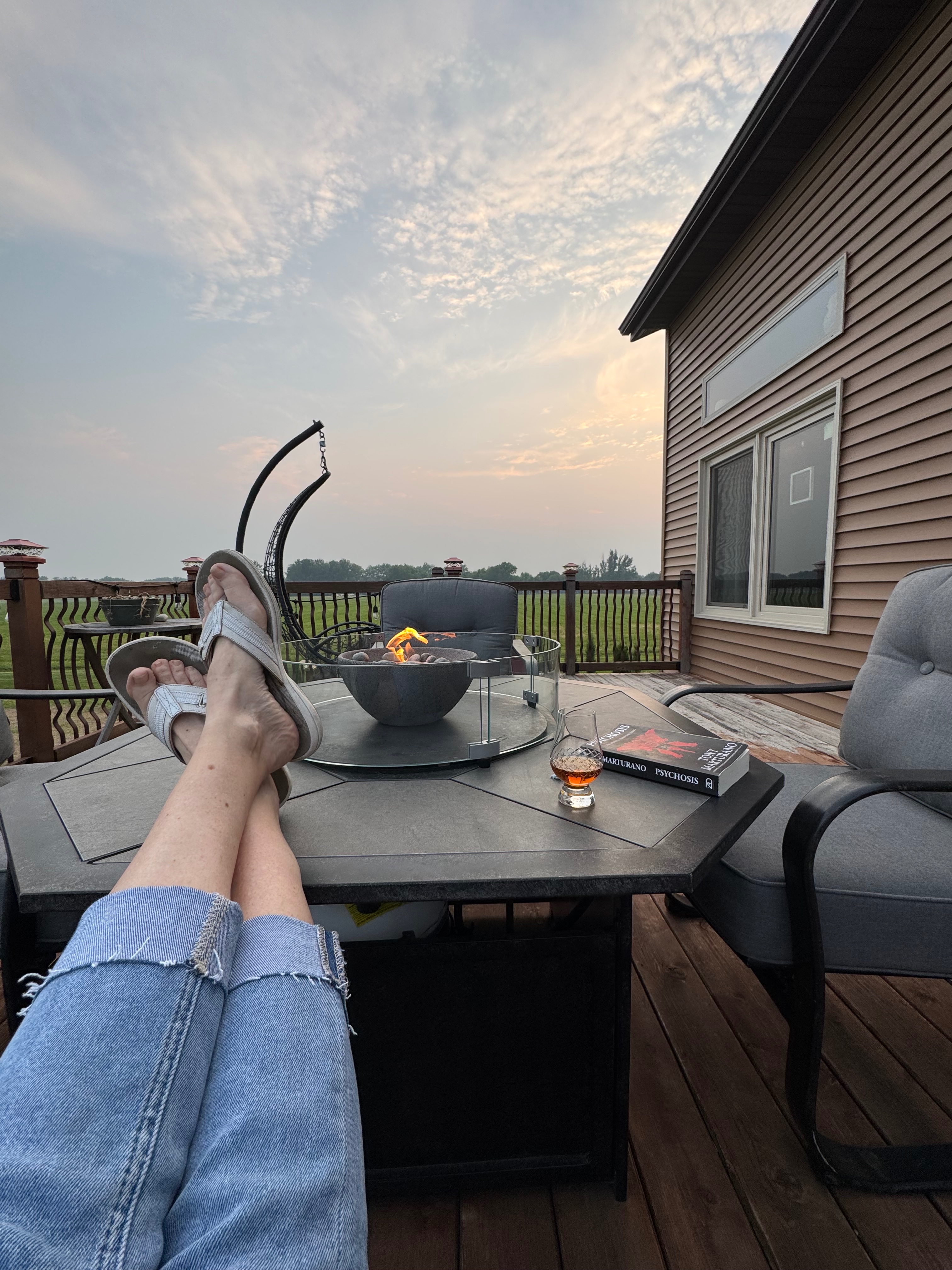 NICE FORM!I fought with the fire table for over half an hour. The husband is working an overnight shift, but he said he put a full tank in it…I beg to differ. So I pulled out my fire bowl. The woman wants a fire, she’ll damn well have a fire.. With flip flops on.