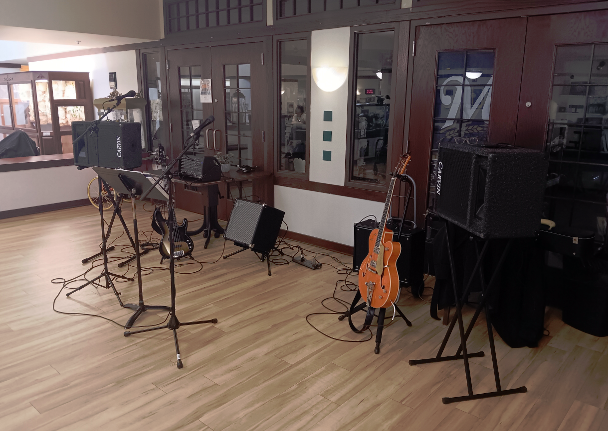 It's a very rewarding gig, bringing joy to all the folks who don't get out much. We never drive more than a half hour. Load-in/load-out is easy and all fits on my Rock-n-Roller cart.