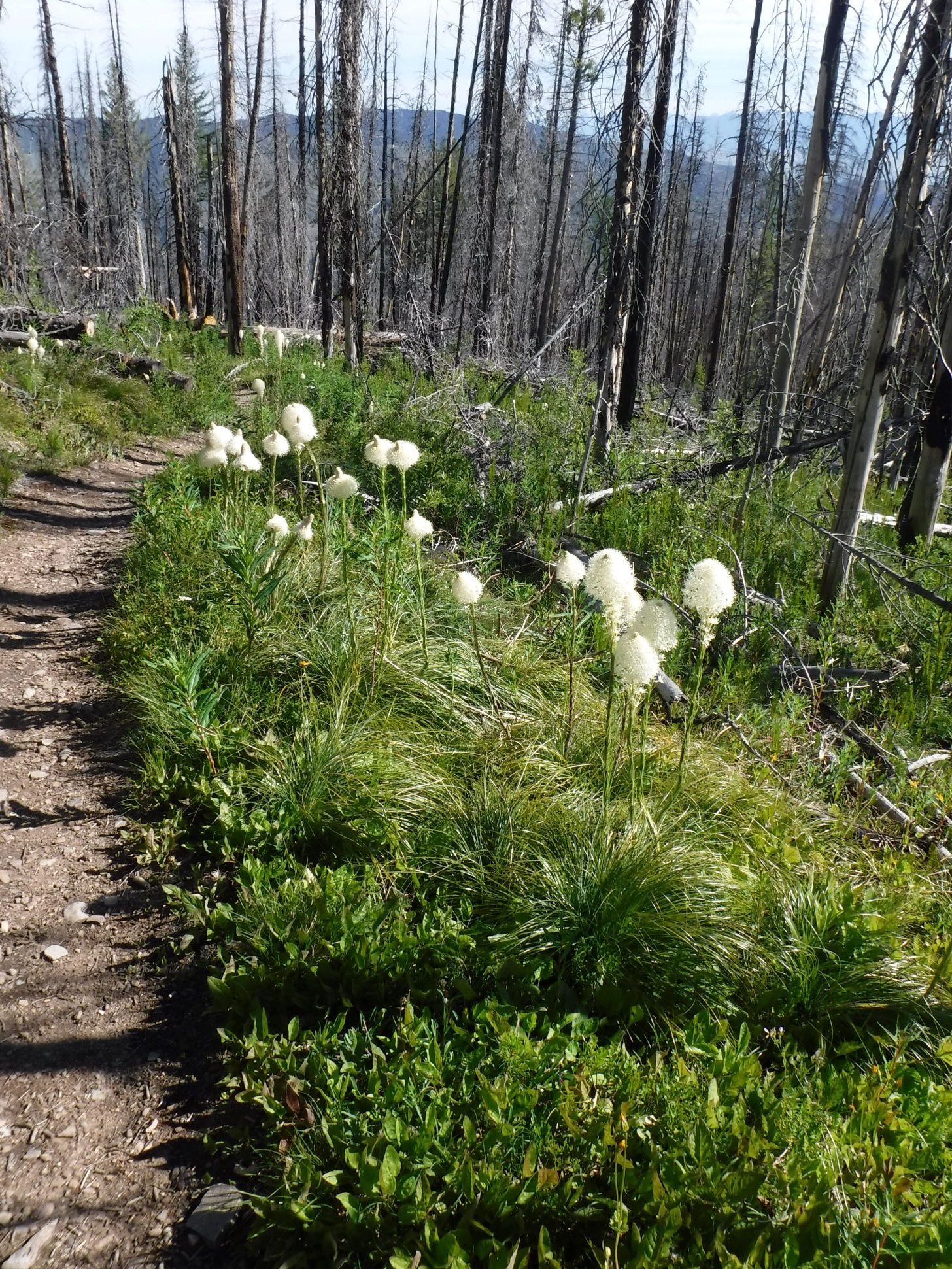 The Bear Grass and other wildflowers are blooming up from the trailhead. With increasing elevation the veg went from early summer to late winter .