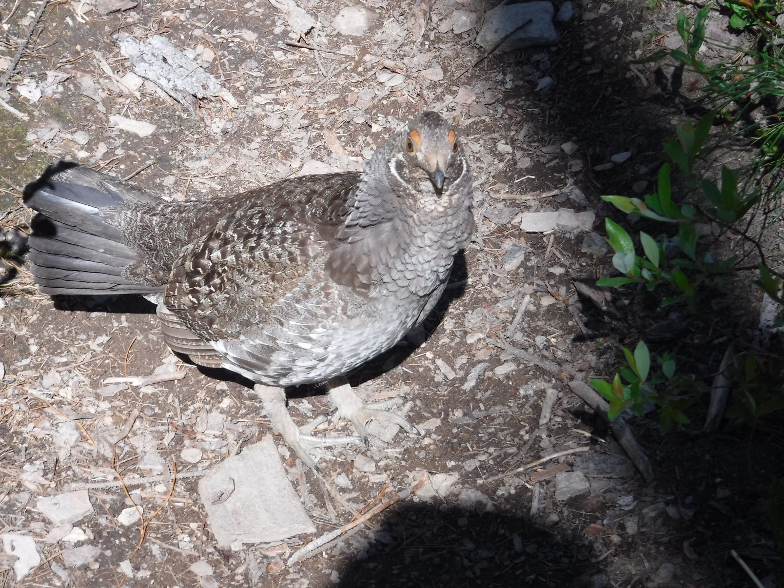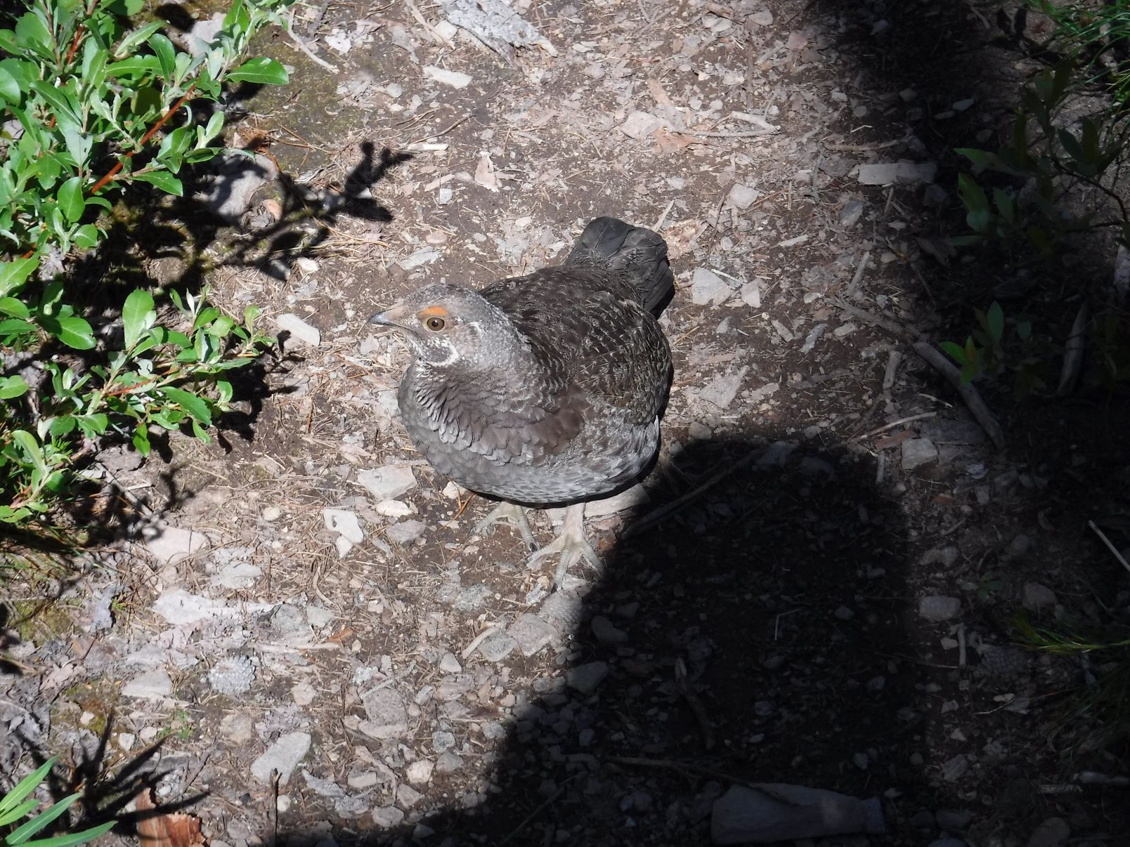 Ran into a confused Mom. I flushed her three little kids at a point on the trail. She (Spruce grouse) came up to me looking for them. I told her were they went but wouldn't listen.