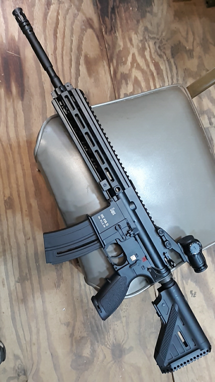 Bought some stuff from H&K parts, a muzzle end to run a suppressor, The 416 and Colt m4 22's have a scrawny barrel thread. the barrel looks like a pencil on both, The outer sleeve makes it look regular size. The Hammerli 22 has a regular barrel and uses a 1/2 inch mount like a 5.56. all three of them use the same mags, i did buy a 50 round drum for the three on clearance. couldn't pass it up. Also the rear stock on the 416 is a hard plastic POS.