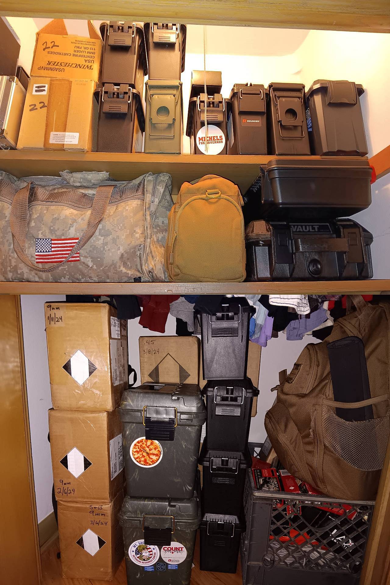 Wow, all those boxes, ammo cans, and pistol cases are full of ammo, not the range bags. The milk crate has empty boxes that I'll transfer the loose rounds into. I'll order more on the 1st. I'll just have to figure out where to put it, besides downrange.