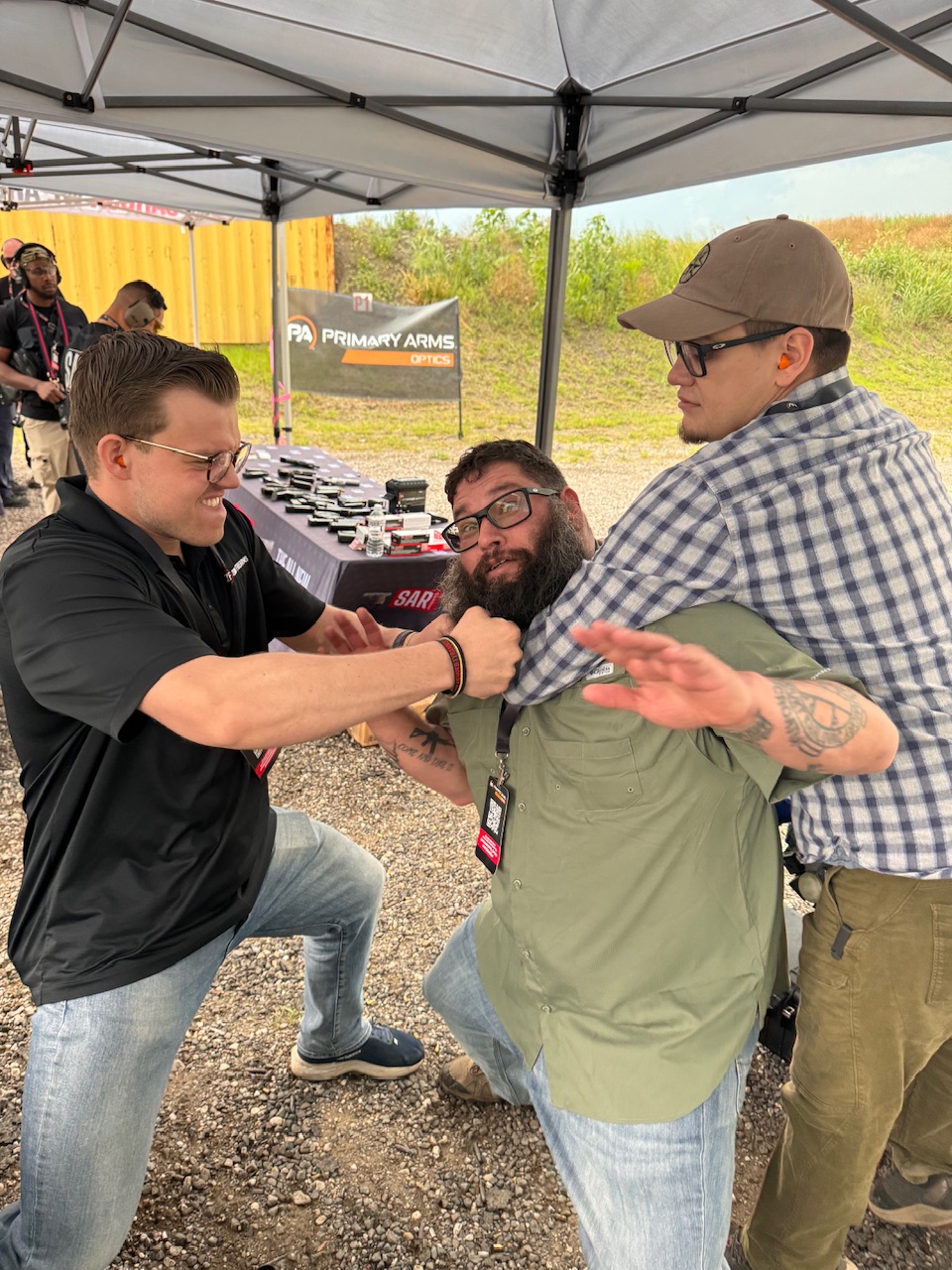 That looks more like a four finger jingle tingle , than a gut punch.Next up, that’s was a low blow foul, All I did was tell the Sons of Liberty Gun Works guys, my Hi-Point carbine was just as good.