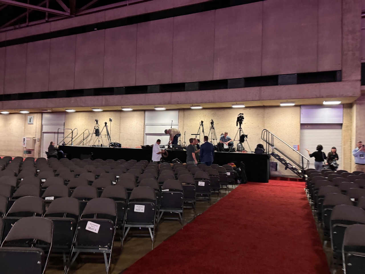 5am to wake up, head to media check in. By 7 the media was finally allowed in the actual ballroom to set up. 30 min was the deadline to be set up. Since I am photo, I just set my case and backpack down to claim my 2x4 spot on the platform. I’m Next to Bloomberg and the local affiliate. Now before you judge the media it’s funny to listen to the backbone of news world talk amongst each other. You would be surprised that their leanings don’t match what you see on tv. After being kicked out the platform and room is then cleared and will be one of the most secure rooms in the world.
