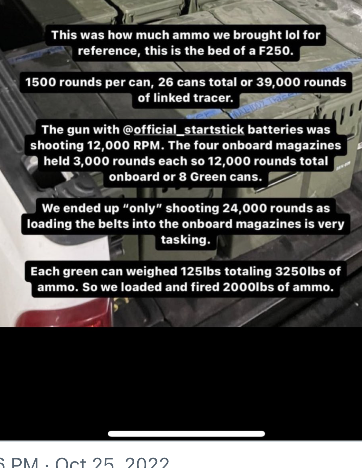 Four miniguns on an old M45 quad machine gun mount blasting away at a combined 12,000 rounds-per-minute is really something to see and hear.