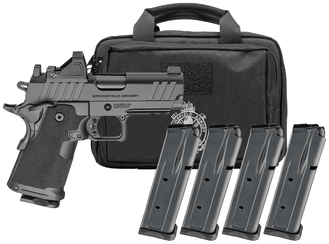(1) Springfield Armory 1911 DS Prodigy 3.5″ Compact AOS 9mm, Gear PacTotal Value: $1,667